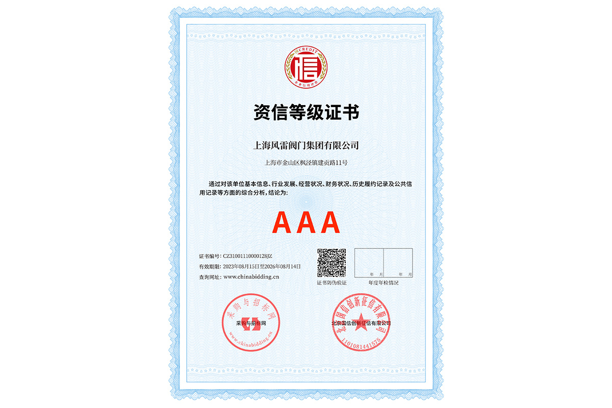AAA資信等級(jí)證書