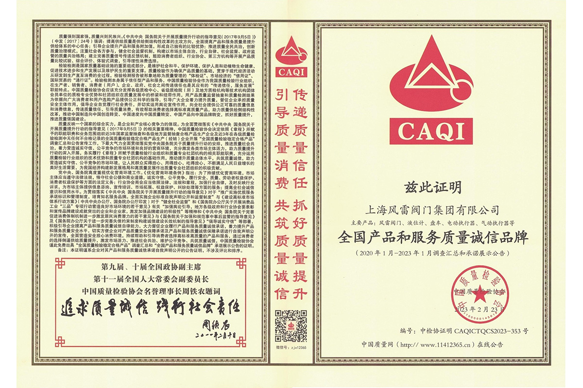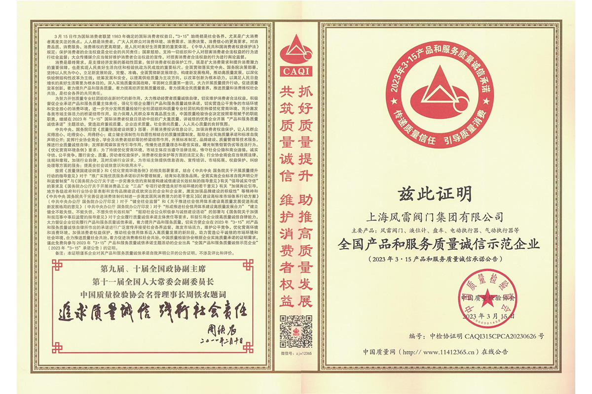 315全國(guó)產(chǎn)品和服務(wù)質(zhì)量誠(chéng)信示范企業(yè)